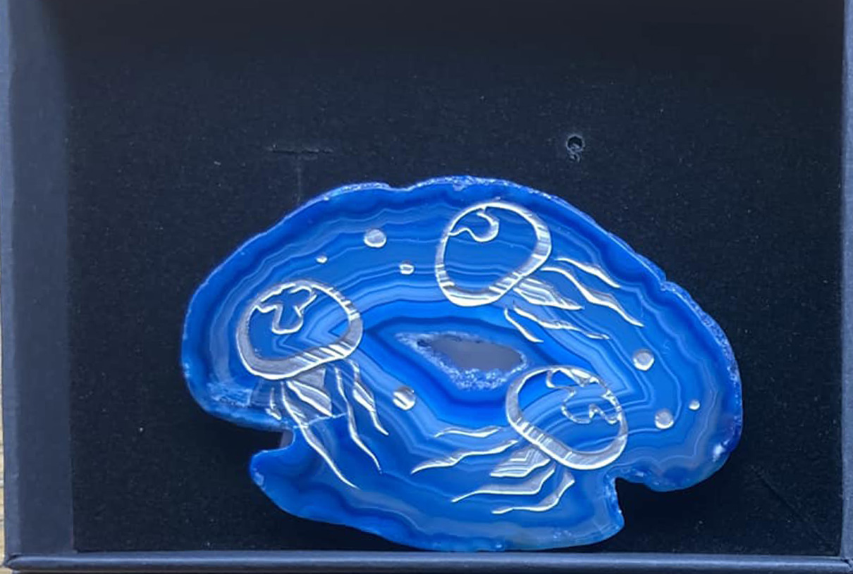 メノウプレート 2 御食国(みけつくに)若狭おばま食文化館2階 若狭工房様にて、新作を制作&陳列させていただきました。夏カラーのメノウプレート。基本的には石の形や模様から、描く絵柄や構図をインスピレーションで瞬時に決めます。手描き(カッター使用なので手切り?)でもあるので、同じモチーフはあったとしても、角度が違ったり表情がちがったり。全て一点ものです。 0 メノウプレート ギャラリーアーカイブ PREVIOUS NEXT Post Share Hatena Pocket RSS feedly Pin it
